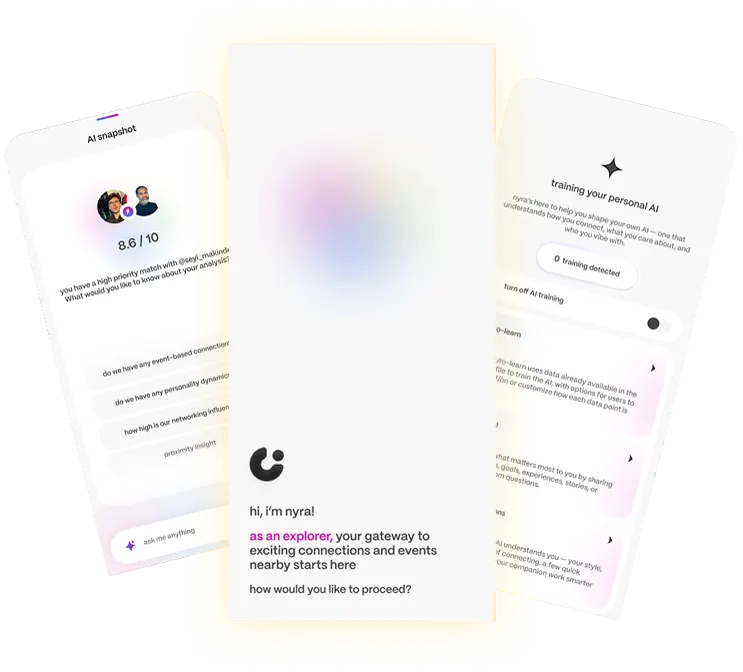 I built the core AI integration including the "Snapshots" feature. Users train a personal AI persona on their bio, interests, and event history, deciding exactly what data to share. This allows others to interact with their persona or run compatibility checks to gauge synergy. The system uses these interactive personas to facilitate deeper, permission-based discovery without the friction of cold outreach.